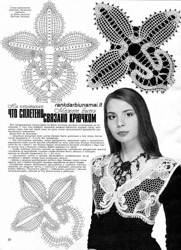 Motyvas pagal pintus nėrinius. Norint gerai ir gražiai imituoti vąšeliu šiuos nėrinius, reikia pasirinkti labai plonus siūlus, taipogi ir vąšelį. Stulpelius nerti tankius, gerai užtraukiant akeles. Aišku, nerti nėriniai niekada nebus tokie gležni ir gražūs, bet norint greitesnio rezultato šiame greitame amžiuje vąšeliu nerti taip pat fantastiški.
